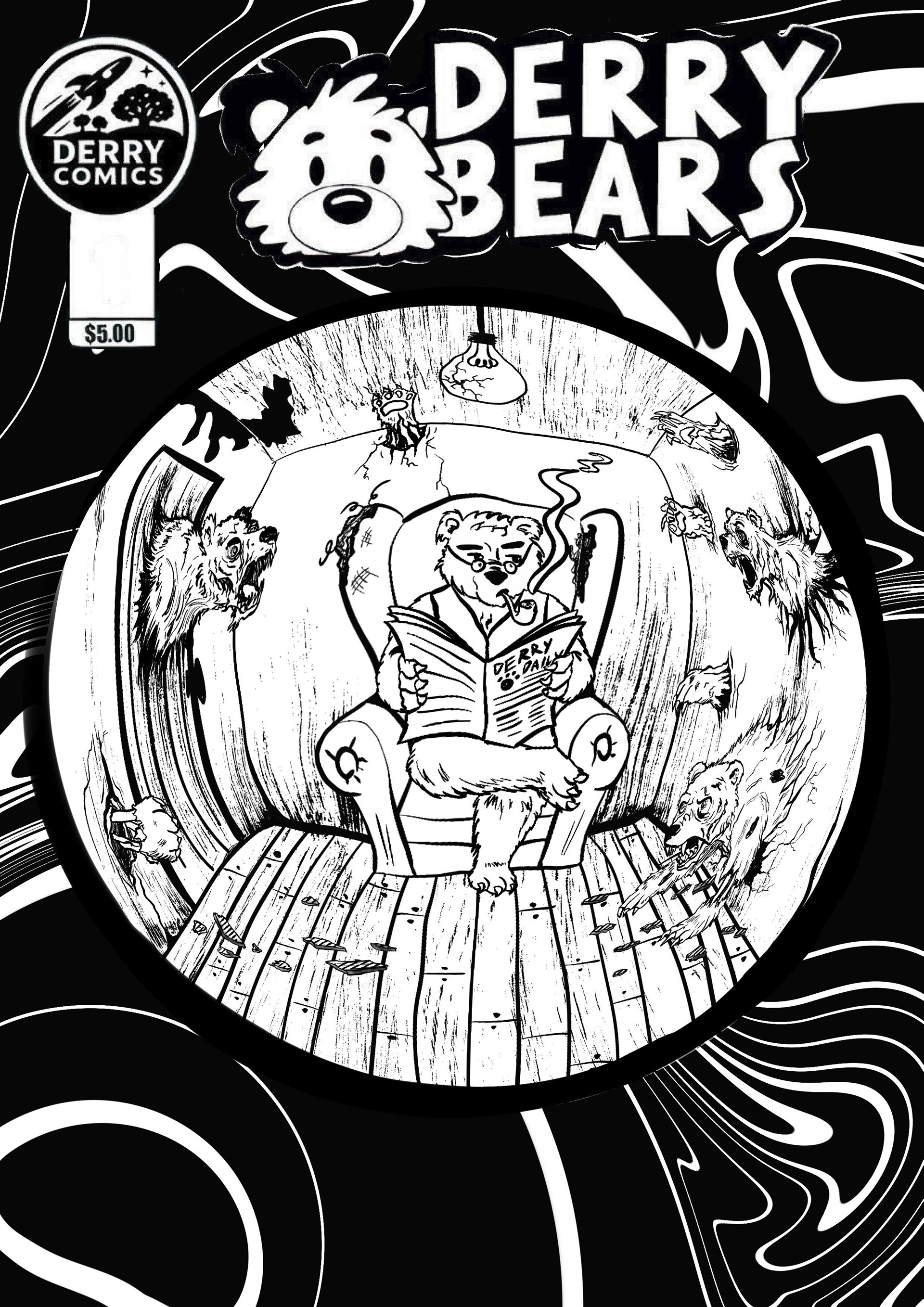 Cover for DerryComic's DerryBears horror series. Preview of Episodes 8 and 9, illustrated and written by Aly Wheale (me)